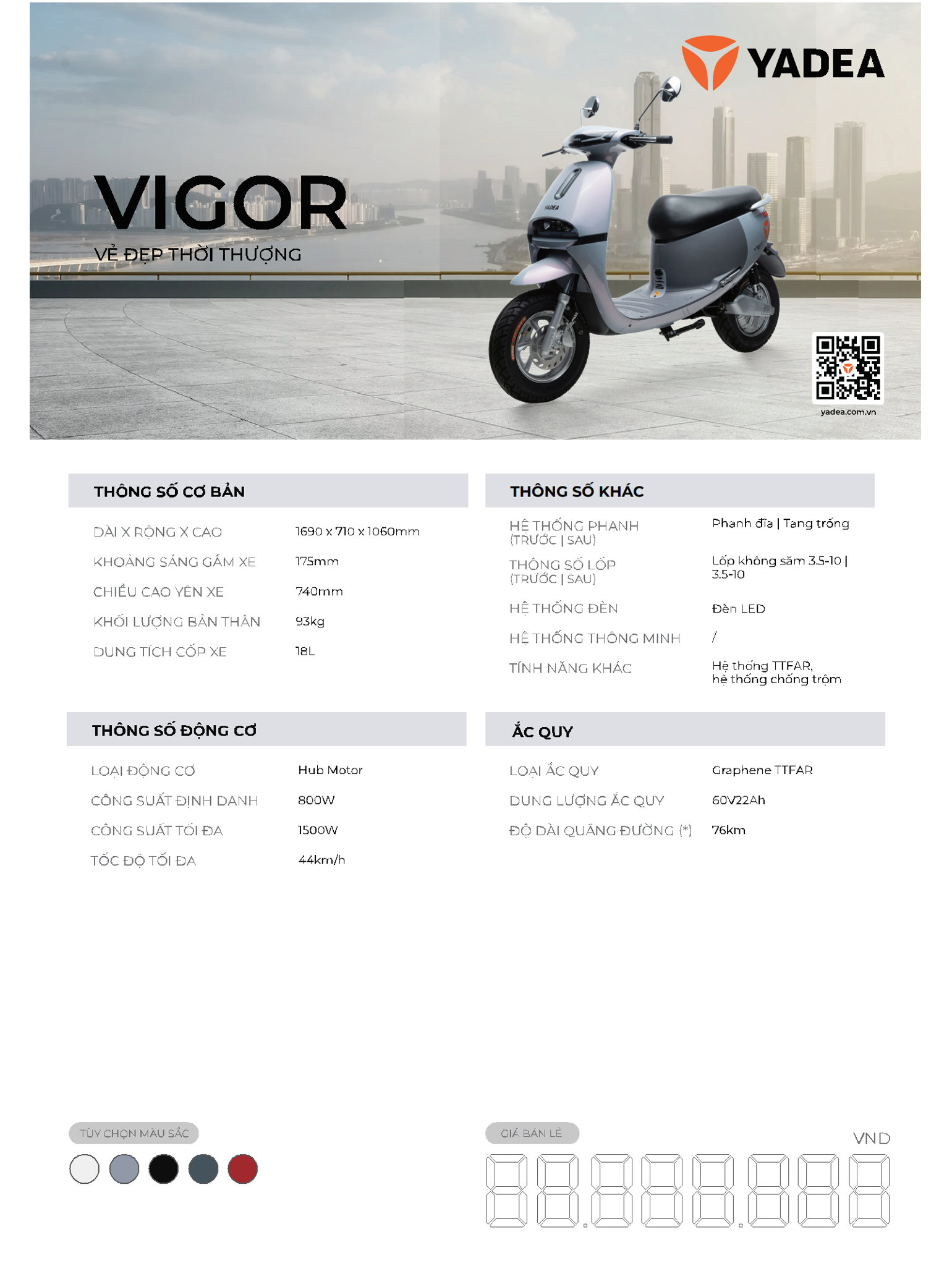 Kết hợp giữa kiểu dáng hiện đại và công nghệ tiên tiến, YADEA Vigor không chỉ đem lại trải nghiệm điều khiển đỉnh cao mà còn đảm bảo tính an toàn và tiện ích cho người sử dụng.